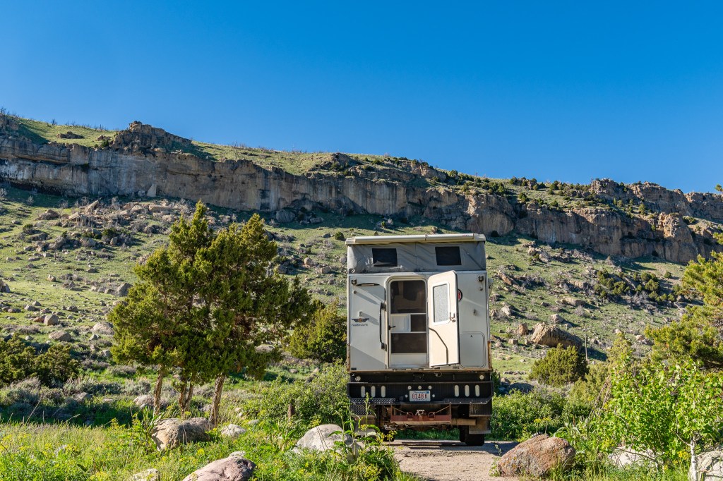camping near climbing wall, Lander, Wyoming