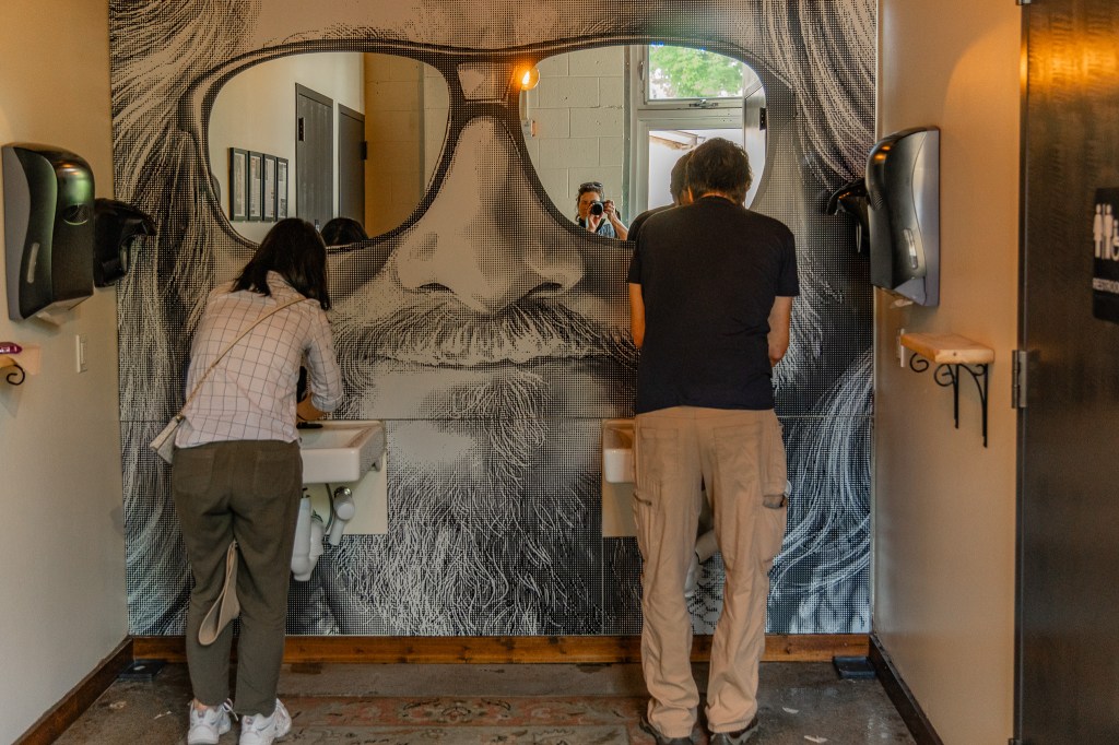 favorite public restroom at Shine Beer Sanctuary, Bozeman, Montana – the dude abides