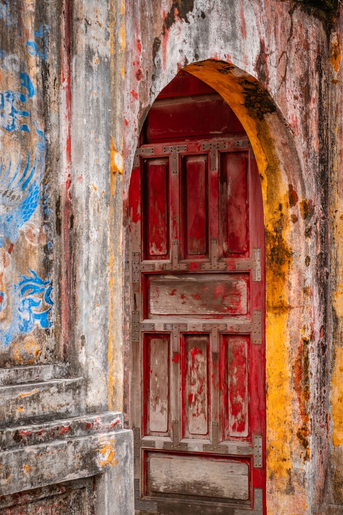 Love your pix of Tet,, the dragon bridge, and the red bridge. Did you eat from the tiny eating spots outside, which appear very colorful. I like the photo of the dramatic woman all in red in traditional dress. The Train in the middle of the alley looks unsettling but dramatic. I like the restored palace, surely a labor of love. How did we ever get involved in such a peaceful and tranquil land without any reason to go to war …? Thanks you for sharing the photos with me!